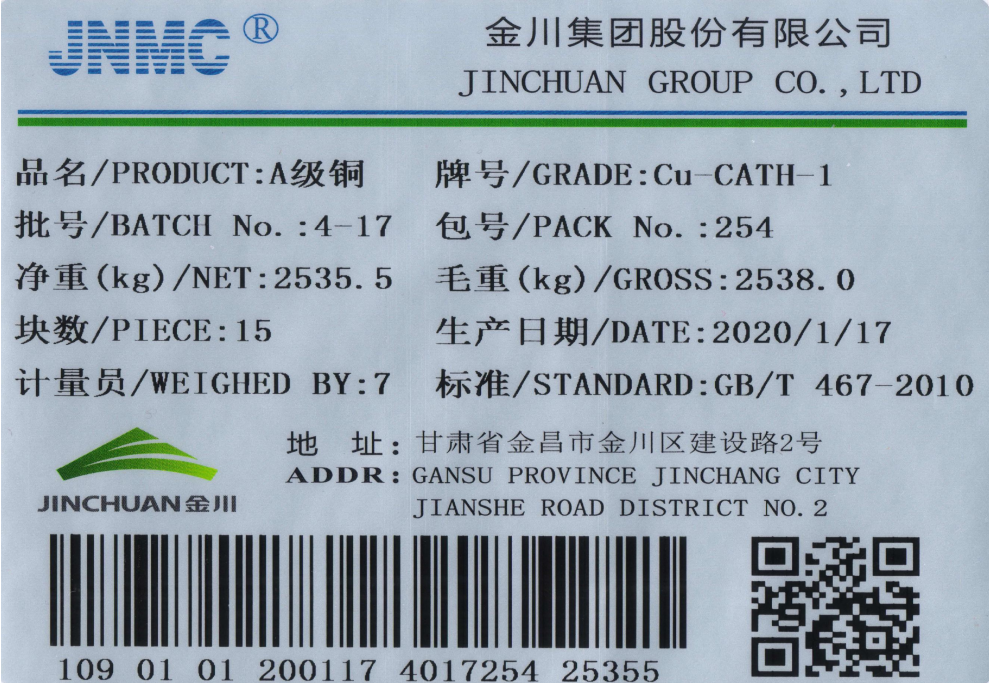 11月11日,上海期貨交易所(下稱上期所)子公司上海國(guó)際能源交易中心(下稱上期能源)發(fā)布了國(guó)際銅期貨合約及相關(guān)規(guī)則,根據(jù)《上海國(guó)際能源交易中心交割細(xì)則》《上海國(guó)際能源交易中心陰極銅期貨合約》和《國(guó)際銅交割商品注冊(cè)管理規(guī)定》等有關(guān)規(guī)定,金川銅【品牌:JNMC-A級(jí)銅(傳統(tǒng)電解),規(guī)格:1030*1000*15】和廣西銅【品牌:JNMC(防城港/永久陰極-K)A級(jí)銅(永久陰極-K),規(guī)格:1030*1010*10】成為首批國(guó)際銅期貨可交割品牌,更好的增加了金川集團(tuán)銅產(chǎn)品的貿(mào)易渠道及轉(zhuǎn)口業(yè)務(wù)、進(jìn)口業(yè)務(wù)的便利性和安全性。